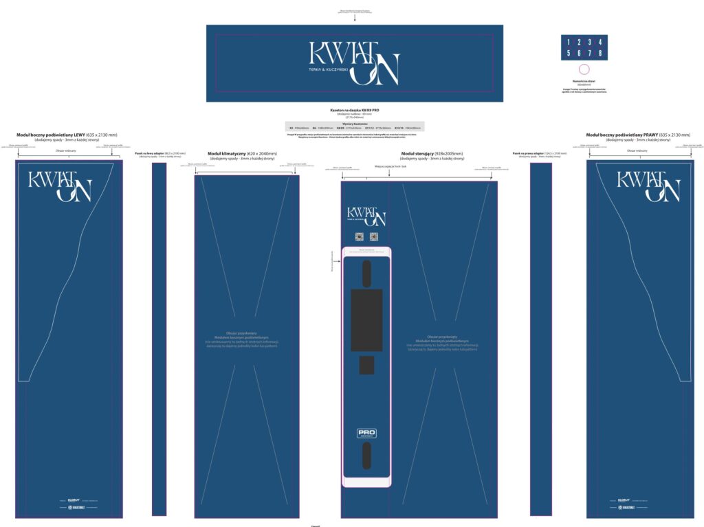 Każdy projekt Kwiatomatu zaczyna się od indywidualnego szablonu, który pozwala dopasować urządzenie do stylu i tożsamości marki, w tym przypadku marki KwiatON. To właśnie tam nanosimy pierwsze informacje o kolorach, logotypach, typografii i elementach graficznych, które w kolejnych etapach przekształcają się w trójwymiarową wizualizację 3D.