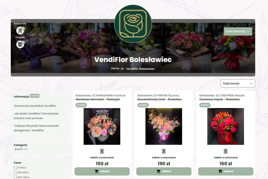 Ważnym elementem całego modelu VendiFlor jest połączenie świata online z fizyczną dostępnością bukietów.