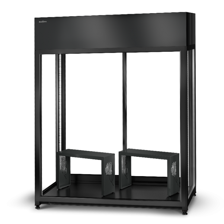 Dzięki panoramicznym, hartowanym szybom, zapewnisz doskonały widok z każdej strony. Dasz kwiatom przestrzeń, bo możesz zarówno postawić rośliny w zbiornikach, jak i powiesić gotowe kompozycje na poprzeczce lub wyeksponować na dodatkowych, wiszących półkach.