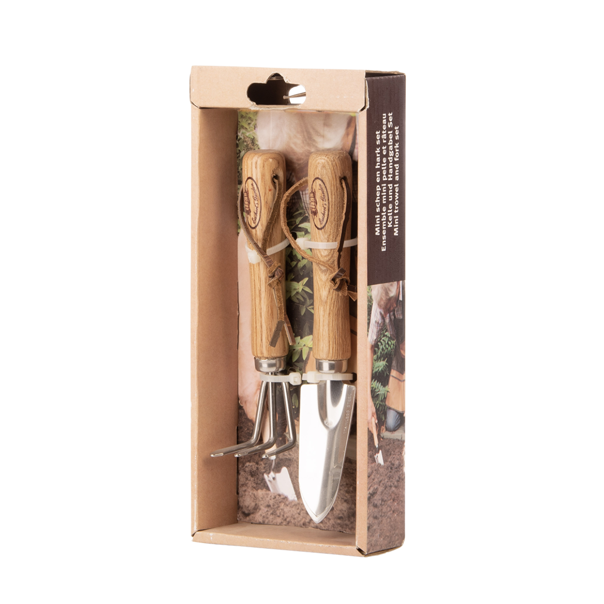 Te tradycyjne mini narzędzia ze stali nierdzewnej są idealnym prezentem dla każdego, kto ma zielony kciuk. Ten zestaw mini narzędzi składa się z mini łopaty i mini grabi do pielęgnacji roślin rabatowych. Skórzana pętla do zawieszania. Otwarte pudełko upominkowe z zamkiem euro.